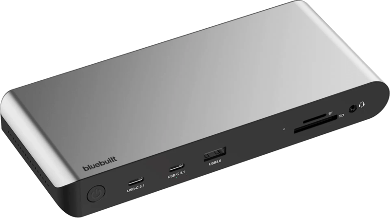 Let op: het docking station werkt het beste als je voor gebruik het DisplayLink stuurprogramma installeert. Deze download je gemakkelijk via de DisplayLink website.Breid je werkplek uit met de BlueBuilt DisplayLink Docking Station met Usb-C. Met dit docking station sluit je tot 2 monitoren aan via HDMI. Hiermee haal je een maximale resolutie van 4K op 60 hertz. Zo maak je snel meer ruimte voor al je vensters. Daarnaast heb je genoeg usb poorten voor randapparatuur en geheugenkaarten. Je sluit dus gemakkelijk en snel je muis, toetsenbord en usb stick aan. Ondersteunt jouw laptop Power Delivery? Dan laad je met dit BlueBuilt dock tijdens het werken je laptop op. Zo hoef je niet meer op zoek naar een stopcontact. Via de ethernetpoort sluit je een internetkabel aan voor stabiel bekabeld internet. De BlueBuilt DisplayLink Docking Station met Usb-C werkt op alle Windows laptops en MacBooks met een usb C poort die een videosignaal doorstuurt. Zo check je of jouw laptop een geschikte usb C poort heeft. Wat kan je met dit docking station? Tot 2 monitoren aansluiten Laptop opladen met Power Delivery tot 100 watt (wanneer jouw laptop Power Delivery ondersteunt) Werken met bedraad internet Muis en toetsenbord aansluiten Telefoon opladen Geheugenkaart lezen Koptelefoon aansluiten Als je 1 monitor op dit docking station aansluit, haal je een maximale resolutie van 4K op 60 Hertz. Als je 2 monitoren op dit docking station aansluit, haal je een maximale resolutie van 4K op 60 Hertz.