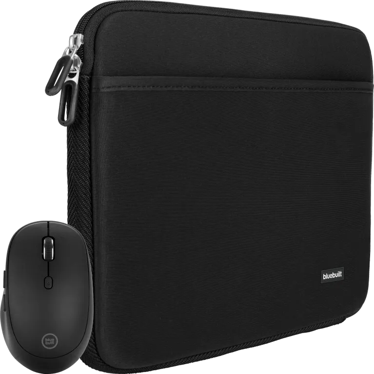 Met de BlueBuilt Laptophoes 36 cm 15 inch S Zwart + Tradendum Muis bundel neem je jouw laptop veilig mee en klik je soepel door je documenten. De hoes beschermt jouw laptop tegen krassen, stoten en beschadigingen. Je neemt je laptop veilig mee in je tas door deze stoffen sleeve met gevoerde binnenkant. Heb je haast en wil je snel je laptop uit je tas pakken? Door de dubbele ritssluiting pak je jouw laptop gemakkelijk uit de hoes. Je laat de hoes hierbij gerust in de tas zitten. Verder scrol je soepel door je documenten met de Tradendum muis. Je koppelt de muis via bluetooth met je laptop en navigeert snel tussen pagina’s door de 2 duimknoppen. Door de lasersensor gebruik je de muis op elke ondergrond, dus ook op een glazen tafel. De binnenmaten van deze laptophoes zijn 2,1 x 36 x 24 cm. Let bij het kiezen van een laptophoes niet op het inchformaat, maar op de afmetingen van je laptop.