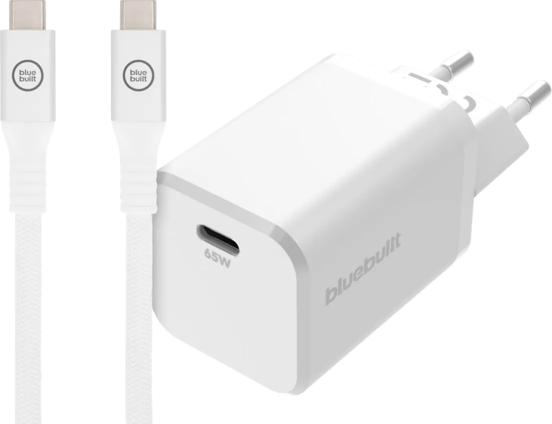 Met de BlueBuilt Power Delivery Universele Oplader 65W + usb C oplaadkabel (2m) Wit laad je meteen jouw laptop op en werk je gerust verder. De krachtige oplader levert 65 watt vermogen, hiermee laad je de meeste laptops op. Het is een kleine oplader, waardoor je hem gemakkelijk meeneemt in je tas. De BlueBuilt oplader levert nooit meer vermogen dan je apparaat aan kan. De BlueBuilt Usb C naar usb C kabel 2m Nylon Wit heeft 2 usb C aansluitingen. De kabel levert 240 watt aan vermogen, dus je laadt hiermee met gemak een krachtige laptop op. Hij is gemaakt van nylon, waardoor hij langer meegaat dan een kunststof kabel. Met een kabellengte van 2 meter heb je net iets meer bewegingsvrijheid en hoef je niet direct naast een stopcontact te werken.