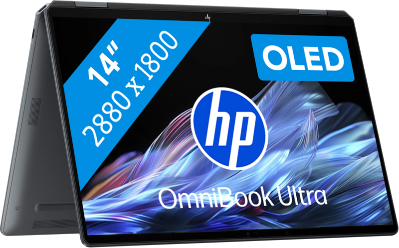 Met de HP OmniBook Ultra Flip OLED 14-fh0090nd werk je snel met AI en Copilot+ assistent. Je voert lokaal AI-taken uit en bewerkt grafische designs met AI. Ook zoek je documenten terug en verbeter je typfouten met Copilot+. Deze 2-in-1 laptop heeft een touchscreen, waardoor je het scherm 360 graden omklapt. Je maakt snel aantekeningen en swipet meldingen weg. Het OLED scherm geeft realistische kleuren en beter contrast, zodat je meer details in schaduwen ziet. De Intel Core Ultra 9 processor en 32 GB werkgeheugen zorgen samen voor soepele prestaties. Je voert zware taken uit, zoals 3D bewerking en grote data analyses, zonder vertraging.