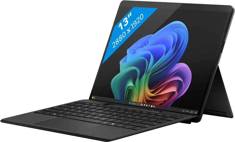 Werk soepel aan verschillende taken tegelijk met de 13 inch Microsoft Surface Pro 11. Deze Surface Pro gebruikt Windows 11 Home. Daarnaast heeft deze 2-in-1 laptop een Snapdragon X Plus processor met 45 TOPS, waarmee je AI aan al je taken toevoegt. De processor leert tijdens gebruik, waardoor hij je taken steeds makkelijker en sneller verwerkt. Zo verbetert AI automatisch je spelfouten, wissel je sneller tussen programma’s en geniet je van een langere batterijduur. Schakel bijvoorbeeld Copilot in en verander je Word document in een PowerPoint presentatie binnen een paar seconden. Daarnaast werkt de processor samen met de ingebouwde videokaart, waardoor je ook visuele taken sneller verwerkt. Deze bewerk je soepel op het touchscreen, bijvoorbeeld met de apart verkrijgbare Surface Slim Pen. Tijdens het tekenen maakt AI automatisch een visueel voorbeeld, waardoor je gemakkelijk je creaties aanpast. Werk je veel onderweg? Geen probleem, met een batterijduur tot 14 uur werk je probleemloos onderweg door. Let op: Je krijgt de Slim Surface Pen, Type Cover en oplader niet standaard bij de Surface Pro en moet je los kopen Ontvang een dag na aankoop een e-mail met een persoonlijke vouchercode voor 1 jaar gratis Norton 360 Deluxe antivirus. Snapdragon branded products are products of Qualcomm Technologies, Inc. and/or its subsidiaries.
